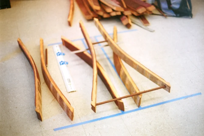Entered in the Vellum_8 furniture competition at Cal Poly, San Luis Obispo, this table was designed to take advantage of the strength of each found material involved. Detail design allows the staves from a cast-off wine barrel, scrap steel rod, and minimal hardware to come together in a meaningful way. The table emphasizes both individual beauty of each texture and color, as well as efficiency as a whole composition.